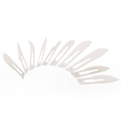 These scalpel blades can be used with a No. 4 Scalpel Handle and are intended for single use only. The special precision-ground cutting edge prevents bruises - the scalpel can be guided easily and safely.