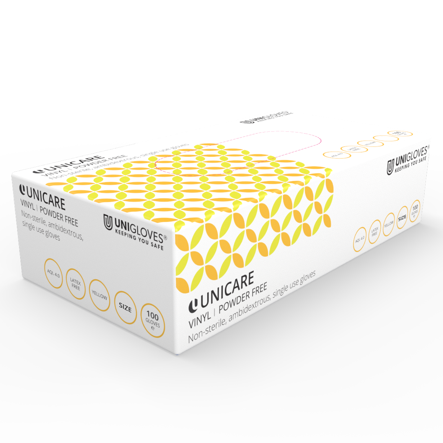Unicare Yellow vinyl examination gloves Box of 100 | Product Description