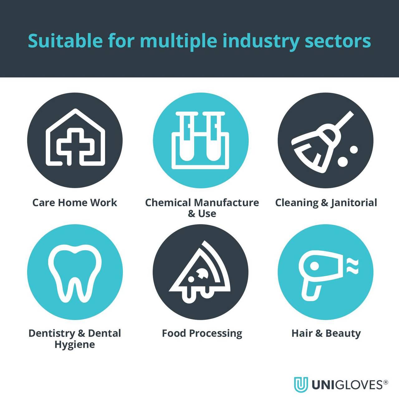 • Latex free nitrile with a chlorinated finish for easy wear and comfort; powder free to stop hands from drying out and designed for use in dentistry, healthcare, piercing/tattoo and hair and beauty